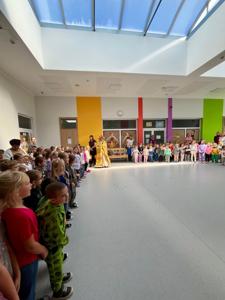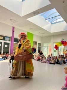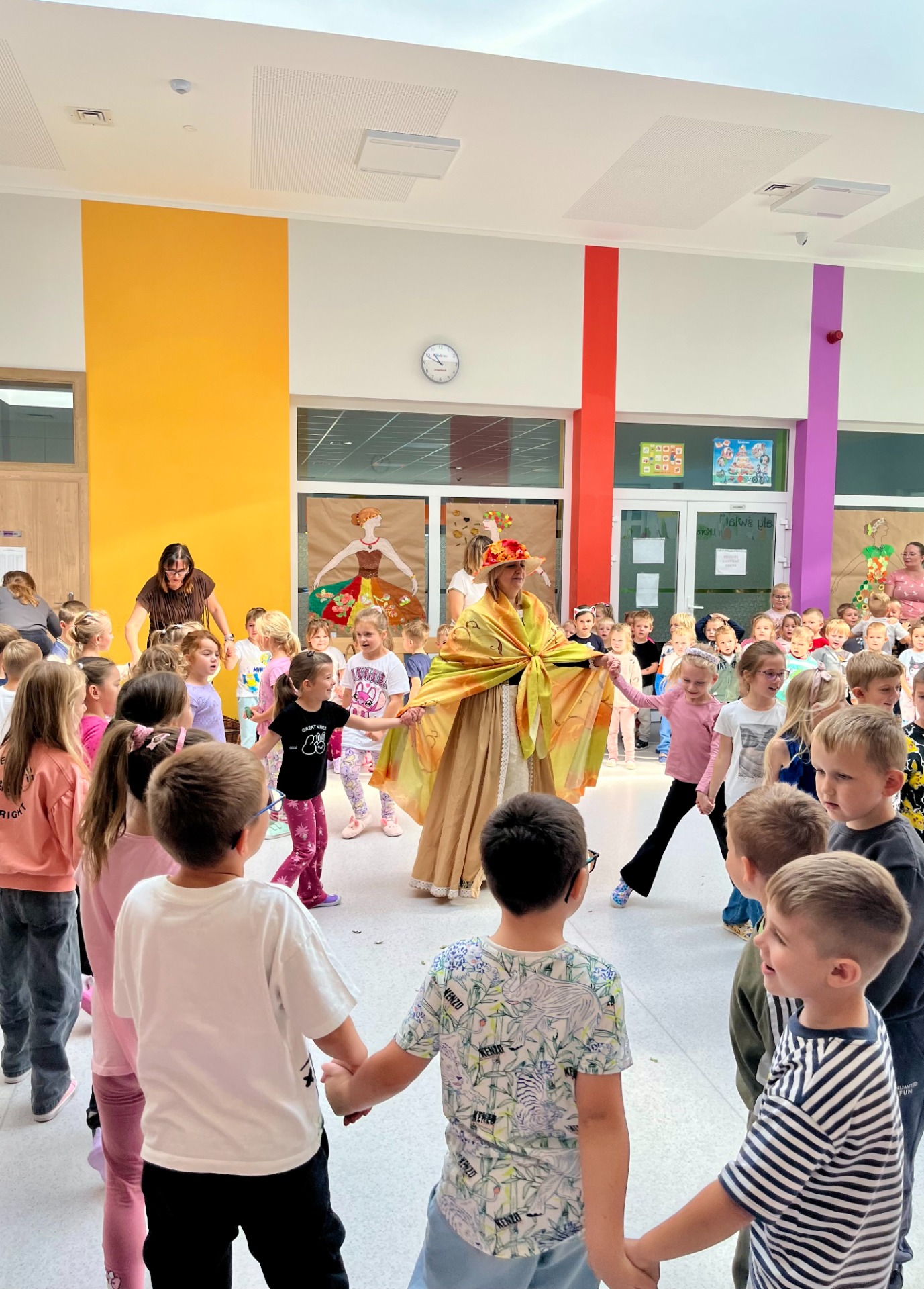 Dzisiaj nasze przedszkolaki powitały nową porę roku – jesień! Z tej okazji odwiedził nas wyjątkowy gość – Pani Jesień, przyszła w pięknym, kolorowym stroju, niosąc ze sobą tajemniczy koszyk pełen jesiennych skarbów.